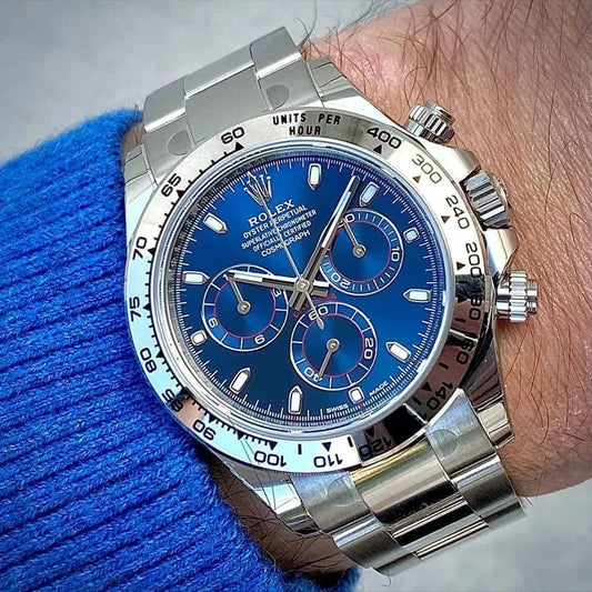 Daytona Blue Dial White Gold Chronograph Mens Watch