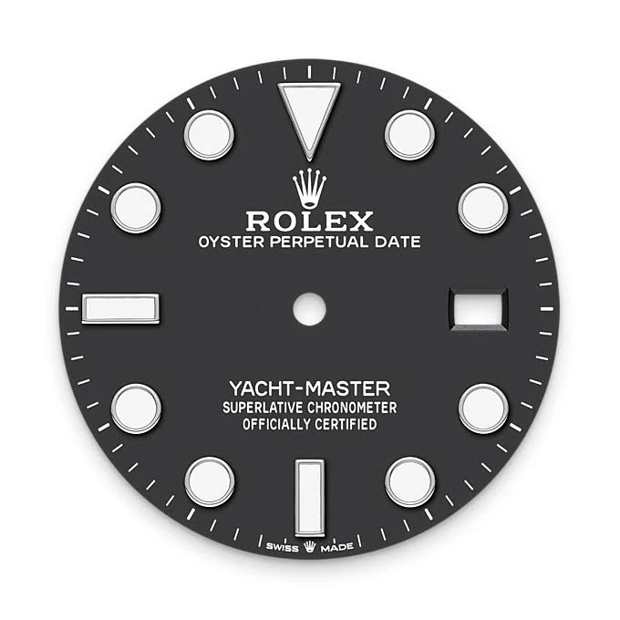The dial of the Yacht-Master 42 reference 226627 is sleek and minimalist, featuring a black color scheme that exudes elegance and sophistication. The luminous hour markers and hands provide excellent legibility in any lighting conditions, ensuring that time can be easily read at a glance. The date window at 3 o'clock adds a practical feature to the watch, making it a versatile timepiece for everyday wear.