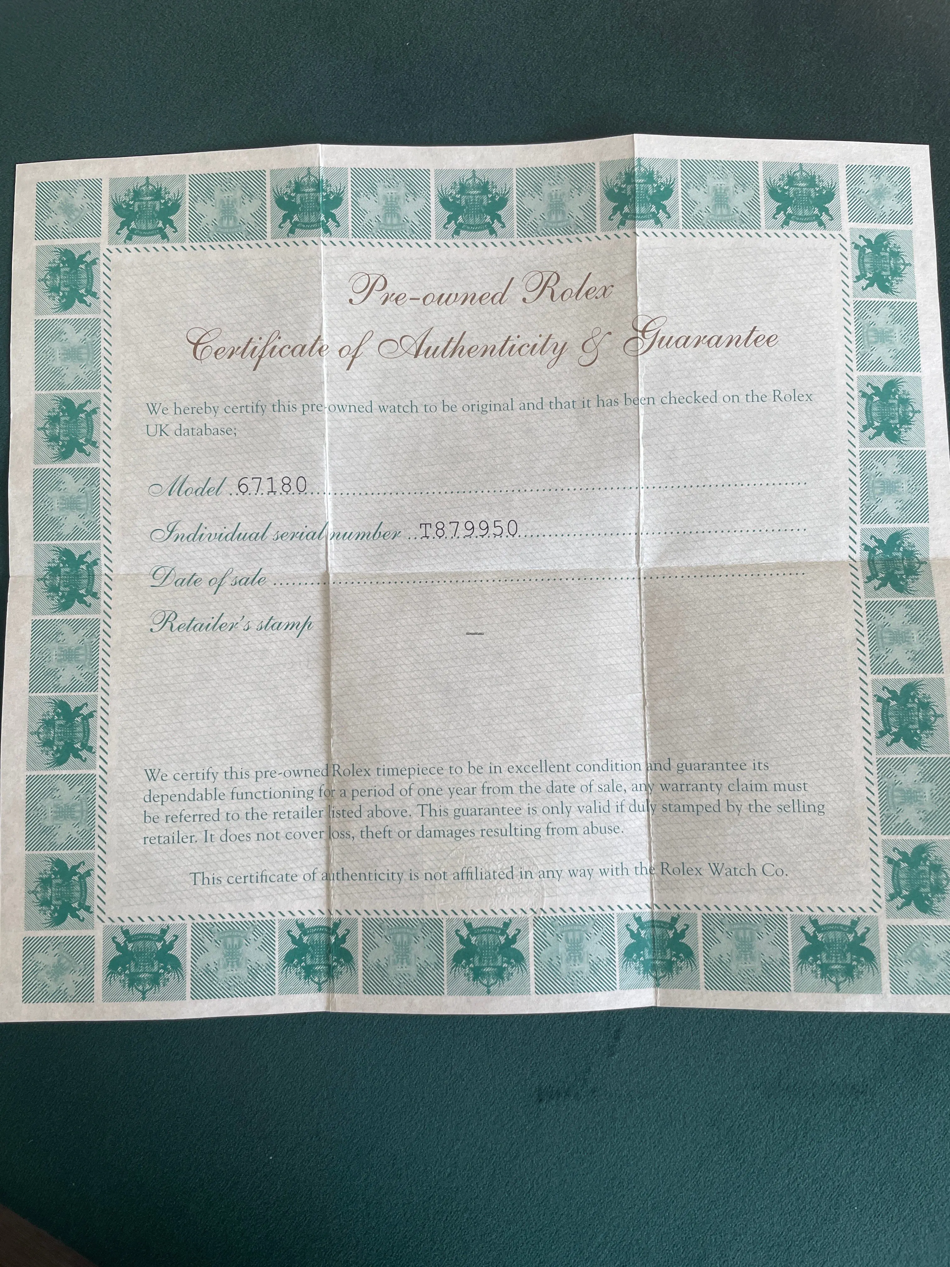 Rx certificate of authenticity and guarantee