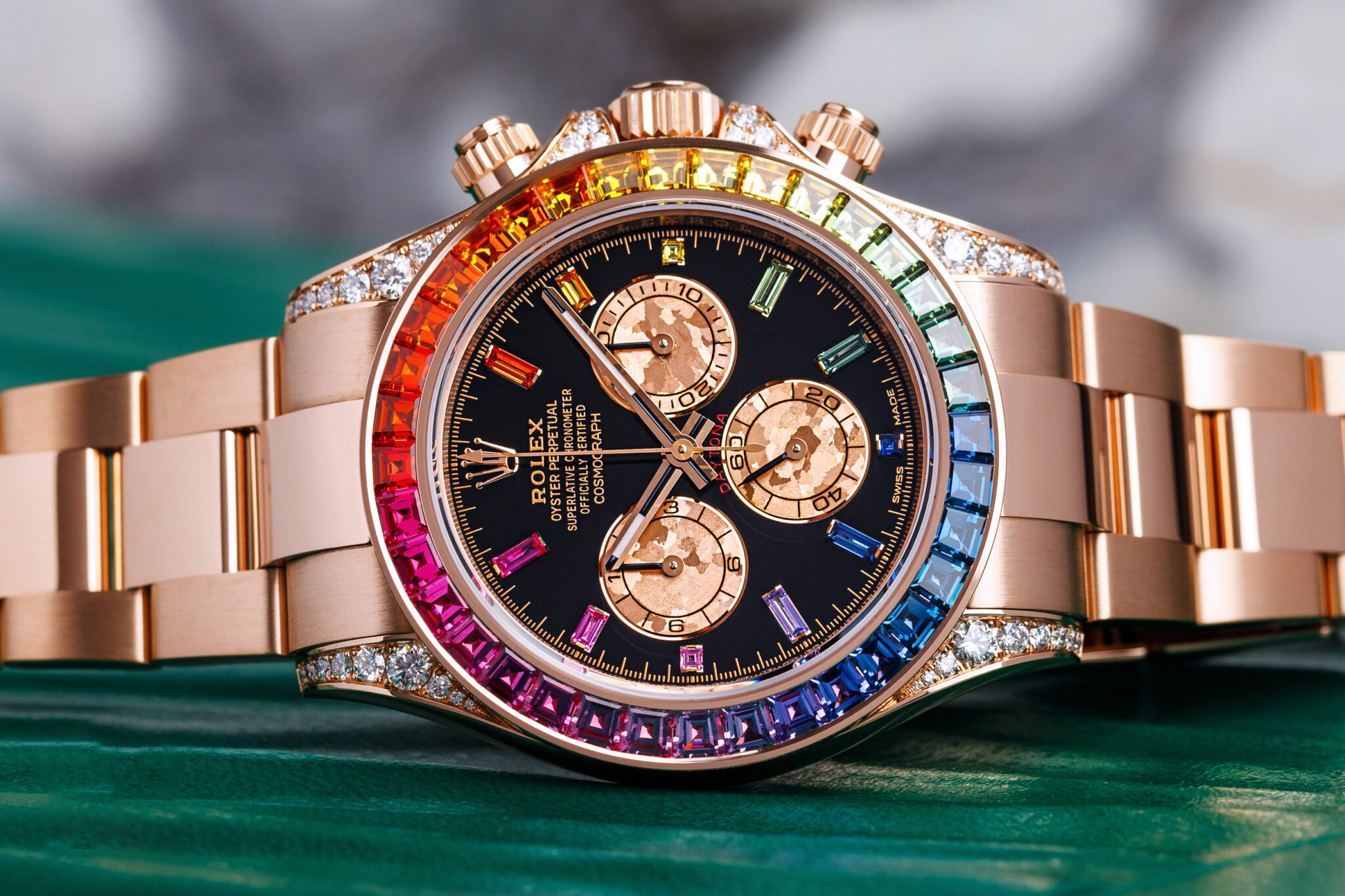 The Daytona Rainbow is currently the most sought-after Rx watch. After its debut at Baselworld, the timepiece quickly rose to cult status. Rx’s Cosmograph Daytona “Rainbow” is perhaps the ultimate modern watch collector’s item.