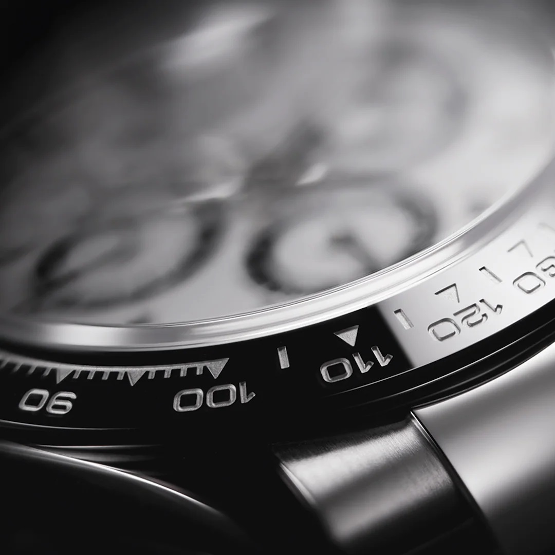 The monobloc Cerachrom bezel in high-tech ceramic on particular versions of the Daytona offers a number of advantages: it is corrosion resistant, virtually scratchproof and the colour is unaffected by UV rays.