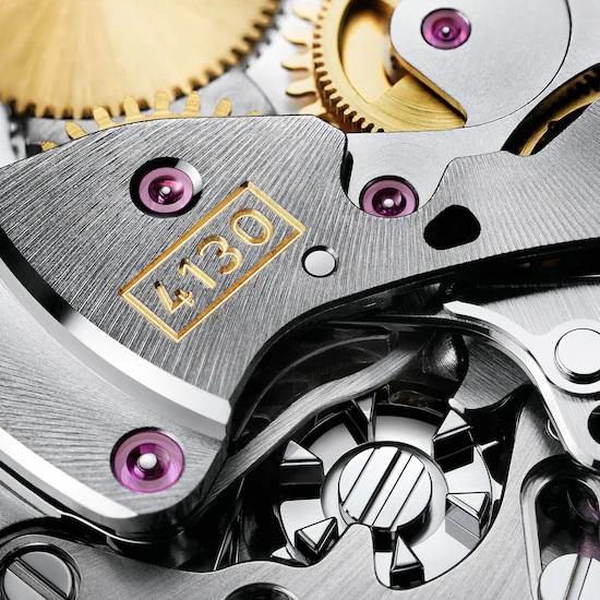 Calibre 4130’s performance stems particularly from the use of a vertical – instead of lateral – clutch to activate the chronograph.