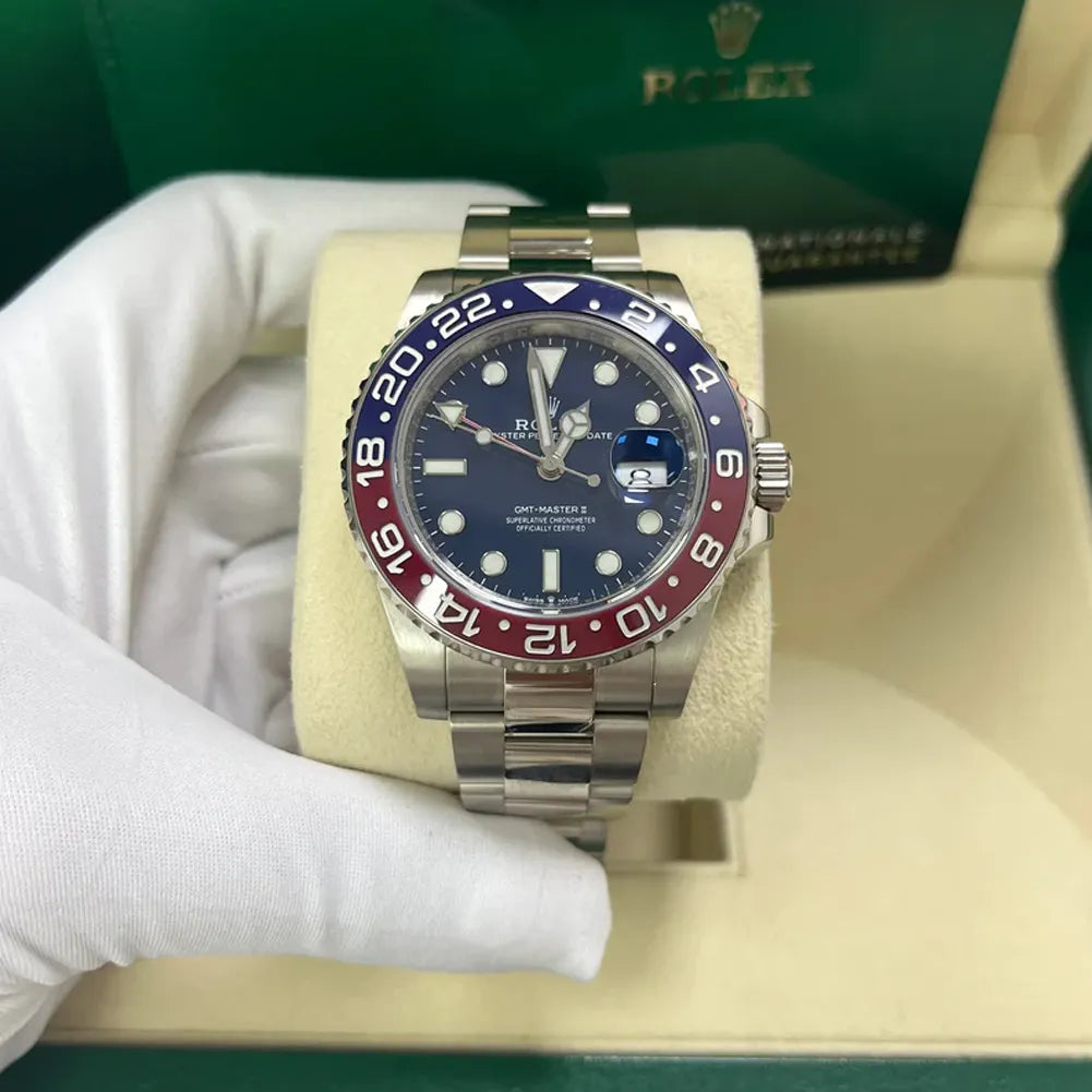 | Model Name: | Rx GMT Master II White Gold Pepsi Bezel Blue Dial Mens Watch 126719 Box Card |
